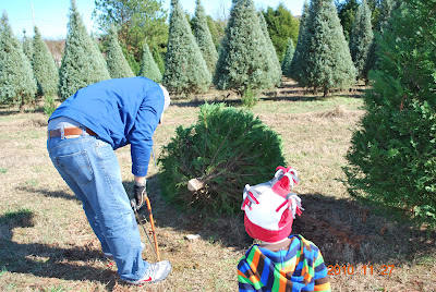 After walking around for a little bit, we found it...the perfect tree. For all the readers that know their Christmas tree varieties, we got a Leyland Cypress. It is a bunch different than the trees that I remember getting as a child, but different is good! It has beautiful shape and looks great with lights and decorations on it.