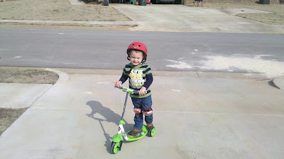 Yes, I am THAT mom! I make him put on his helmet and kneepads to ride his scooter! I am realistic about his (and my own) klutziness: